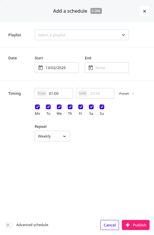 Schedule the playlist to your device