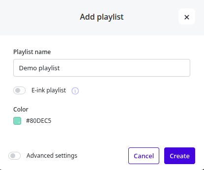 - Name your playlist and select if this playlist will be an E-ink or LCD playlist with the toggle.
