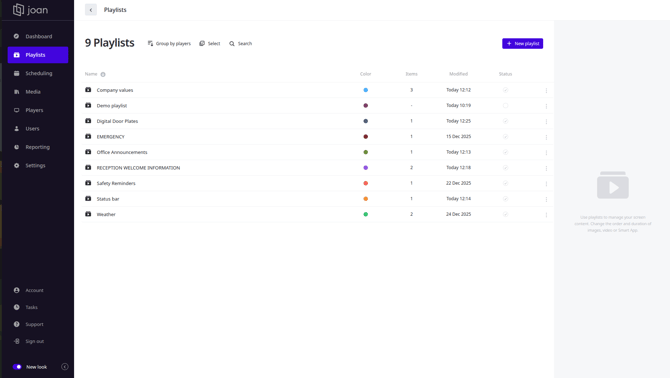 To get access to the Joan Workplace Digital Signage, you can enable it in your Joan portal. Our team will provide you with a URL of your CMS instance and share your login details. Additionally, it is highly advisable to book a demo with us here for an in-person overview of the capabilities.